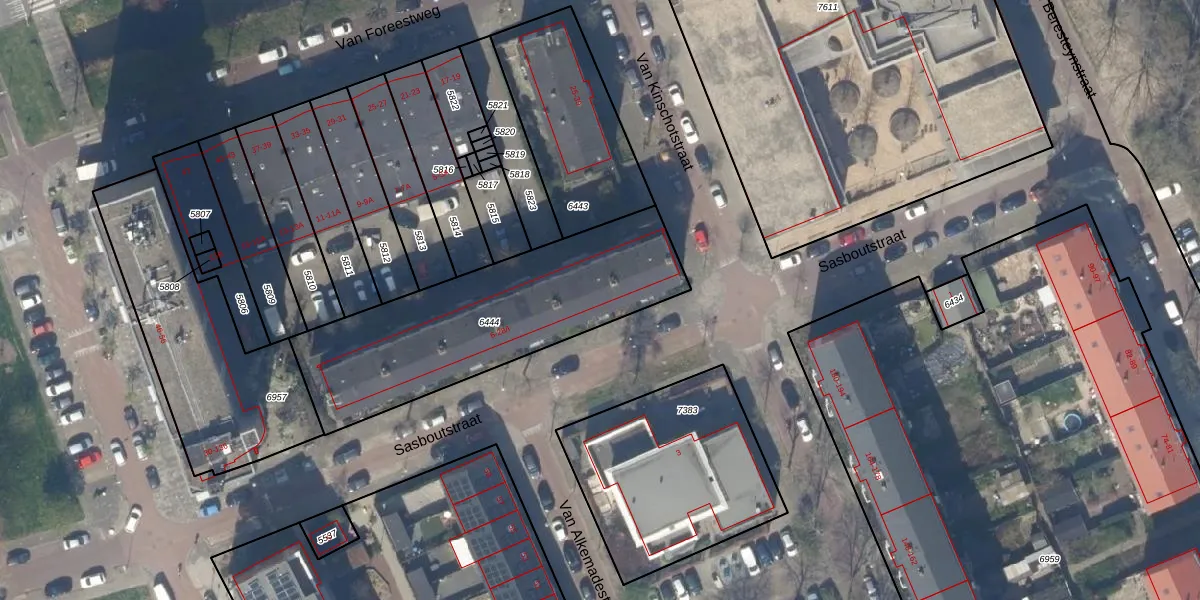 Sasboutstraat 10 is gelegen op kadastraal perceel DEL00F6444. Deze kadastrale aanduiding is uniek en wordt gebruikt door het Kadaster om eigendomsrechten en andere zakelijke rechten vast te leggen. Het perceel maakt onderdeel uit van de kadastrale gemeente Delft.