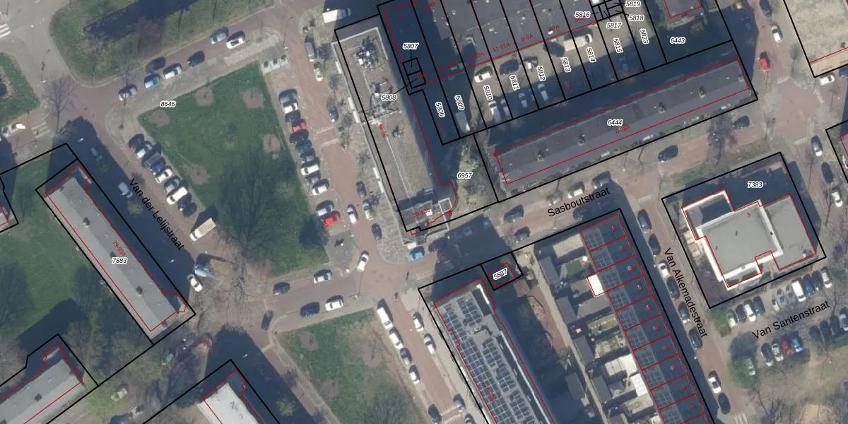 Het perceel waarop Sasboutstraat 116 staat heeft een oppervlakte van 823 m². Dit is een groot perceel. De perceeloppervlakte wordt geregistreerd door het Kadaster. Gedetailleerde informatie over de maten van dit perceel kunt u vinden in het rapport Kadastrale kaart met maatvoering van Sasboutstraat 116.
