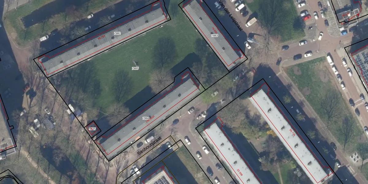 Het perceel waarop Sasboutstraat 140-I staat heeft een oppervlakte van 915 m². Dit is een groot perceel. De perceeloppervlakte wordt geregistreerd door het Kadaster. Gedetailleerde informatie over de maten van dit perceel kunt u vinden in het rapport Kadastrale kaart met maatvoering van Sasboutstraat 140-I.