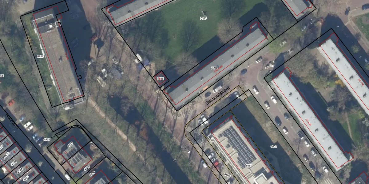 Het perceel waarop Sasboutstraat 158-I staat heeft een oppervlakte van 915 m². Dit is een groot perceel. De perceeloppervlakte wordt geregistreerd door het Kadaster. Gedetailleerde informatie over de maten van dit perceel kunt u vinden in het rapport Kadastrale kaart met maatvoering van Sasboutstraat 158-I.