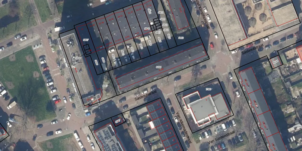 Sasboutstraat 20 is gelegen op kadastraal perceel DEL00F6444. Deze kadastrale aanduiding is uniek en wordt gebruikt door het Kadaster om eigendomsrechten en andere zakelijke rechten vast te leggen. Het perceel maakt onderdeel uit van de kadastrale gemeente Delft.
