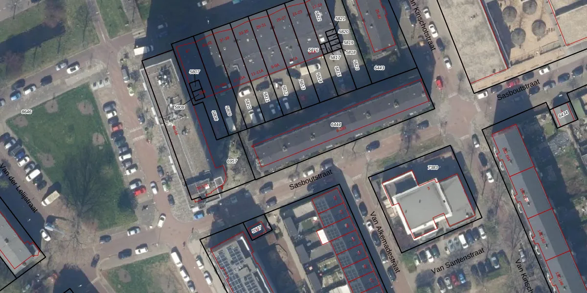 Het perceel waarop Sasboutstraat 24-I staat heeft een oppervlakte van 1061 m². Dit is een zeer groot perceel. De perceeloppervlakte wordt geregistreerd door het Kadaster. Gedetailleerde informatie over de maten van dit perceel kunt u vinden in het rapport Kadastrale kaart met maatvoering van Sasboutstraat 24-I.