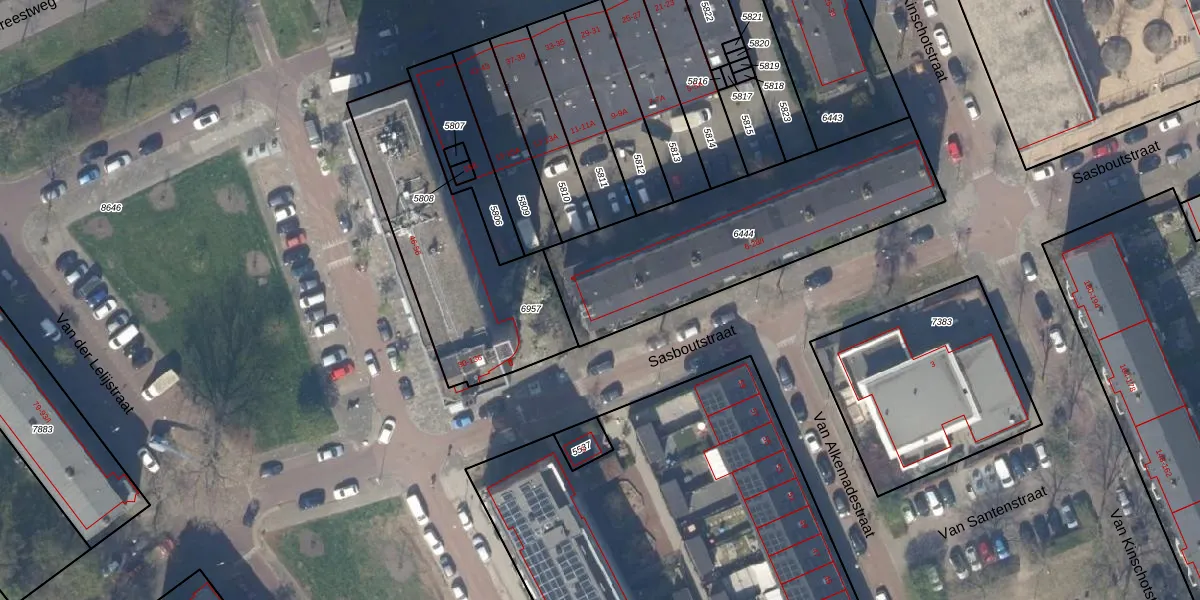 Het perceel waarop Sasboutstraat 28-I staat heeft een oppervlakte van 1061 m². Dit is een zeer groot perceel. De perceeloppervlakte wordt geregistreerd door het Kadaster. Gedetailleerde informatie over de maten van dit perceel kunt u vinden in het rapport Kadastrale kaart met maatvoering van Sasboutstraat 28-I.