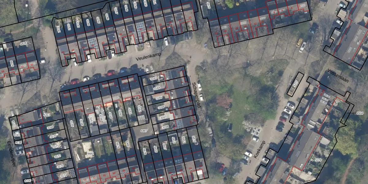Gebruik de zoekbalk of klik op een perceel voor informatie over de adressen binnen dit perceel.