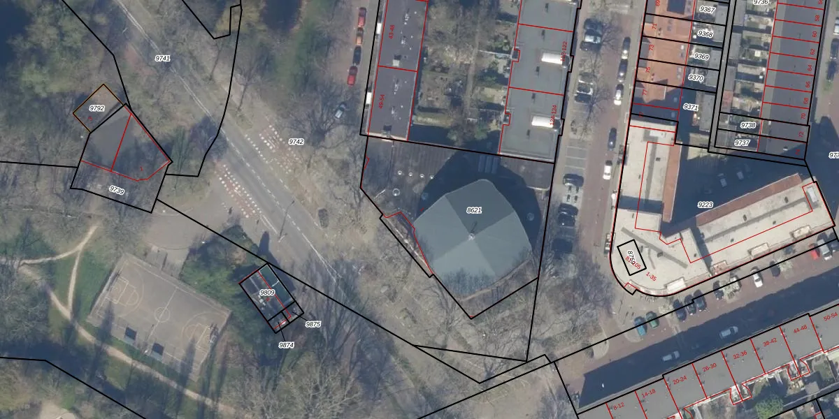 Gebruik de zoekbalk of klik op een perceel voor informatie over de adressen binnen dit perceel.