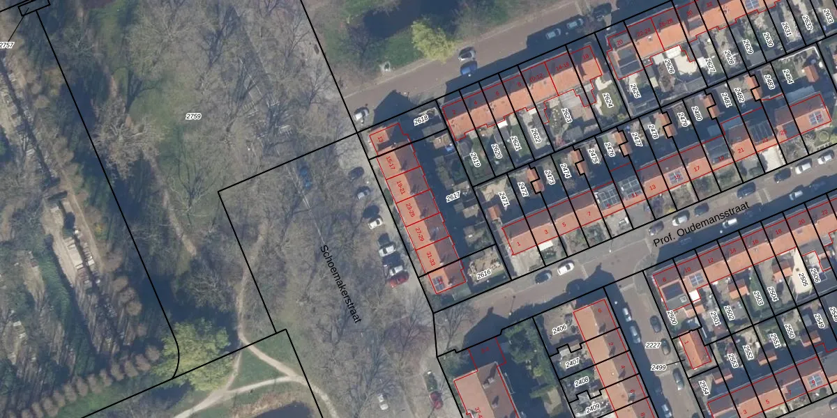 Het perceel waarop Schoemakerstraat 25 staat heeft een oppervlakte van 614 m². Dit is een groot perceel. De perceeloppervlakte wordt geregistreerd door het Kadaster. Gedetailleerde informatie over de maten van dit perceel kunt u vinden in het rapport Kadastrale kaart met maatvoering van Schoemakerstraat 25.