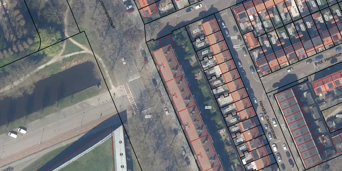 Het perceel waarop Schoemakerstraat 49 staat heeft een oppervlakte van 2582 m². Dit is een zeer groot perceel. De perceeloppervlakte wordt geregistreerd door het Kadaster. Gedetailleerde informatie over de maten van dit perceel kunt u vinden in het rapport Kadastrale kaart met maatvoering van Schoemakerstraat 49.