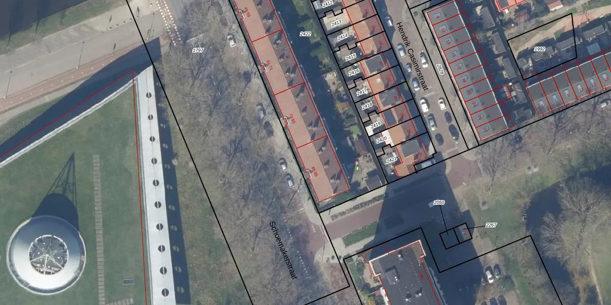 Het perceel waarop Schoemakerstraat 85 staat heeft een oppervlakte van 2582 m². Dit is een zeer groot perceel. De perceeloppervlakte wordt geregistreerd door het Kadaster. Gedetailleerde informatie over de maten van dit perceel kunt u vinden in het rapport Kadastrale kaart met maatvoering van Schoemakerstraat 85.