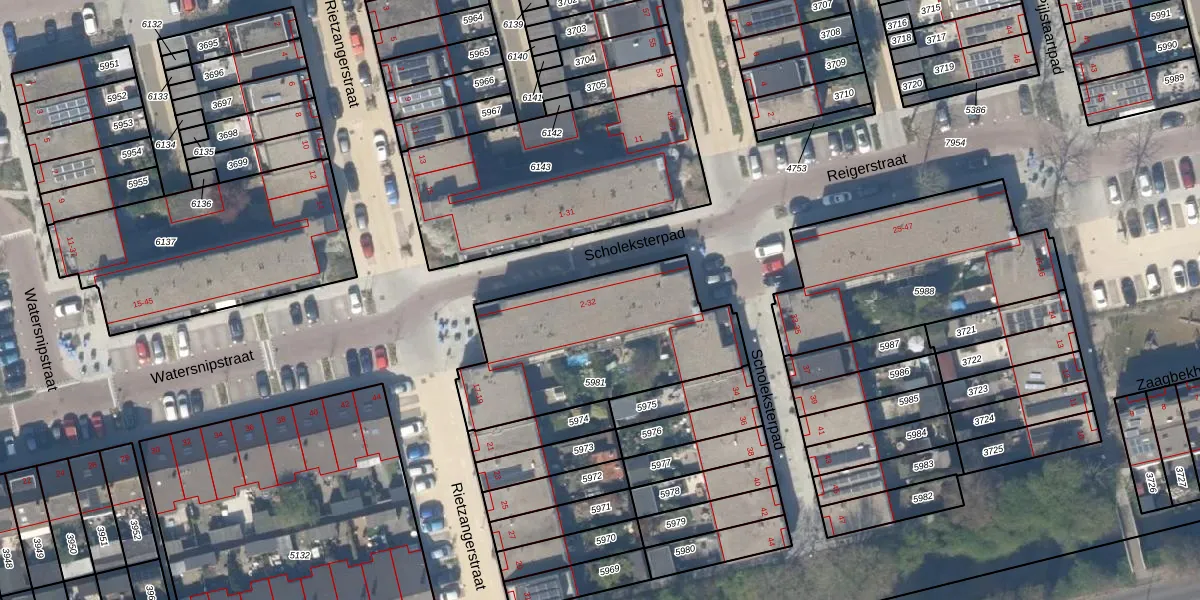 Het perceel waarop Scholeksterpad 16 staat heeft een oppervlakte van 878 m². Dit is een groot perceel. De perceeloppervlakte wordt geregistreerd door het Kadaster. Gedetailleerde informatie over de maten van dit perceel kunt u vinden in het rapport Kadastrale kaart met maatvoering van Scholeksterpad 16.