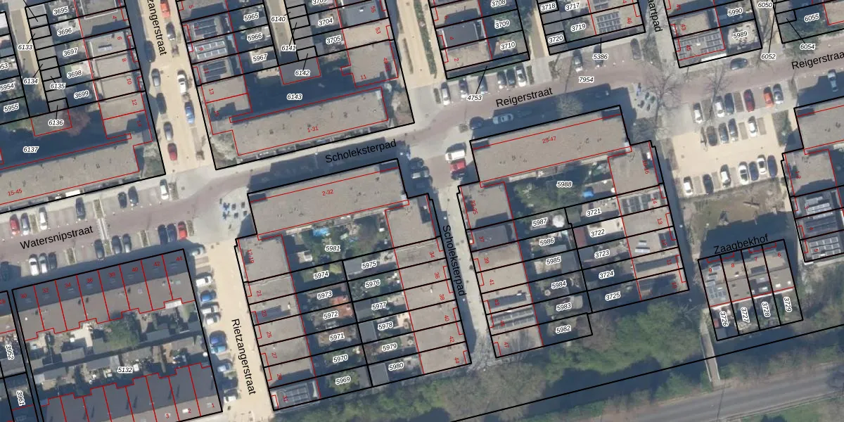 Scholeksterpad 30 is gelegen op kadastraal perceel DEL00R5981. Deze kadastrale aanduiding is uniek en wordt gebruikt door het Kadaster om eigendomsrechten en andere zakelijke rechten vast te leggen. Het perceel maakt onderdeel uit van de kadastrale gemeente Delft.