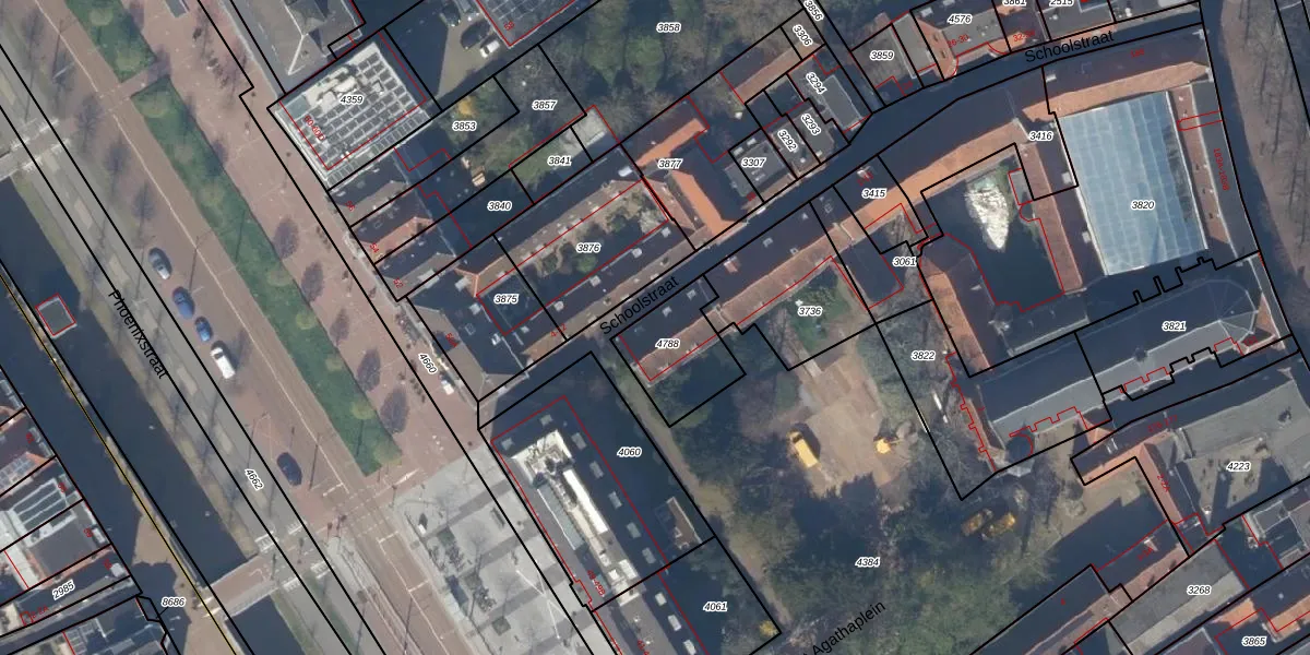 Schoolstraat 1 is gelegen op kadastraal perceel DEL00C4788. Deze kadastrale aanduiding is uniek en wordt gebruikt door het Kadaster om eigendomsrechten en andere zakelijke rechten vast te leggen. Het perceel maakt onderdeel uit van de kadastrale gemeente Delft.
