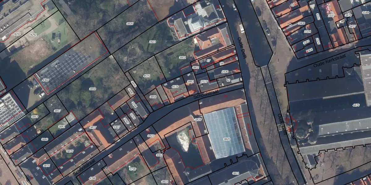 Schoolstraat 30 is gelegen op kadastraal perceel DEL00C4576. Deze kadastrale aanduiding is uniek en wordt gebruikt door het Kadaster om eigendomsrechten en andere zakelijke rechten vast te leggen. Het perceel maakt onderdeel uit van de kadastrale gemeente Delft.