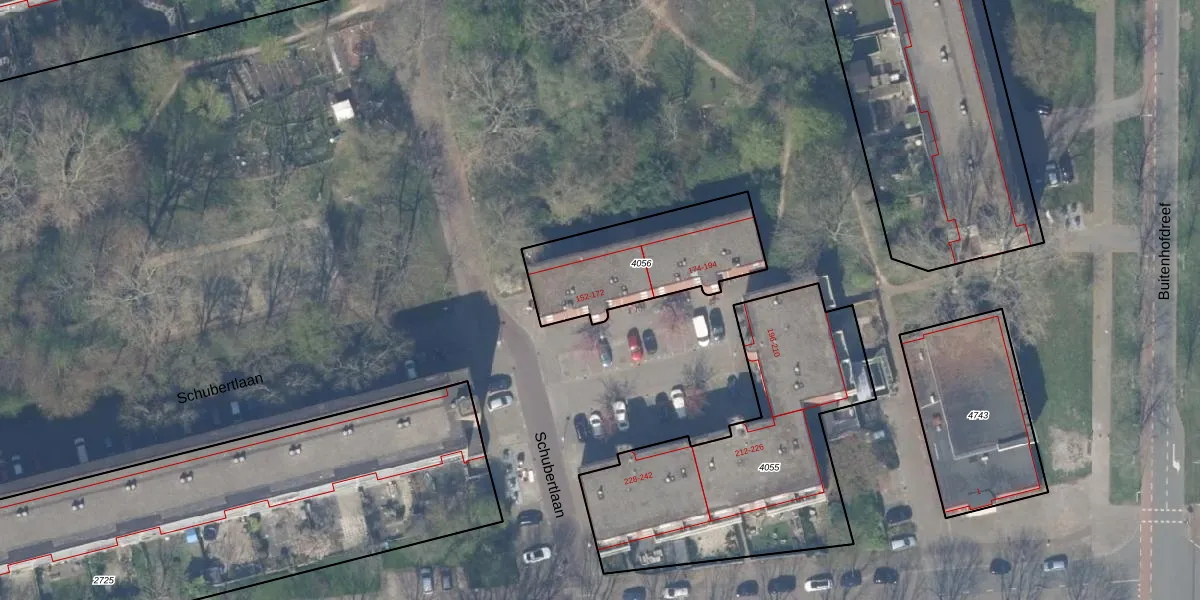 Het perceel waarop Schubertlaan 156 staat heeft een oppervlakte van 530 m². Dit is een groot perceel. De perceeloppervlakte wordt geregistreerd door het Kadaster. Gedetailleerde informatie over de maten van dit perceel kunt u vinden in het rapport Kadastrale kaart met maatvoering van Schubertlaan 156.