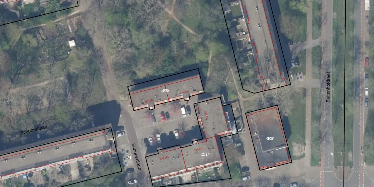 Schubertlaan 190 is gelegen op kadastraal perceel DEL00R4056. Deze kadastrale aanduiding is uniek en wordt gebruikt door het Kadaster om eigendomsrechten en andere zakelijke rechten vast te leggen. Het perceel maakt onderdeel uit van de kadastrale gemeente Delft.