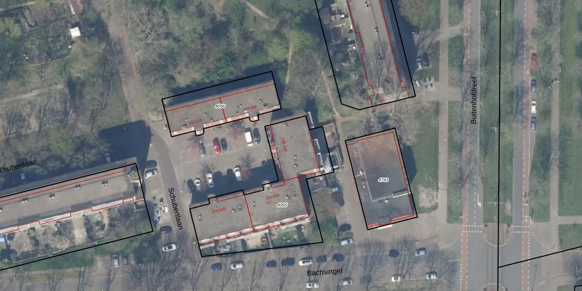 Het perceel waarop Schubertlaan 210 staat heeft een oppervlakte van 1230 m². Dit is een zeer groot perceel. De perceeloppervlakte wordt geregistreerd door het Kadaster. Gedetailleerde informatie over de maten van dit perceel kunt u vinden in het rapport Kadastrale kaart met maatvoering van Schubertlaan 210.