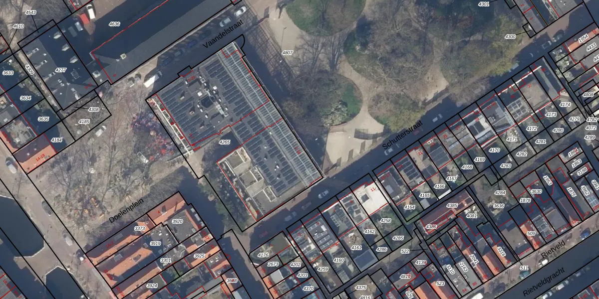 Schutterstraat 16 is gelegen op kadastraal perceel DEL00C4265. Deze kadastrale aanduiding is uniek en wordt gebruikt door het Kadaster om eigendomsrechten en andere zakelijke rechten vast te leggen. Het perceel maakt onderdeel uit van de kadastrale gemeente Delft.