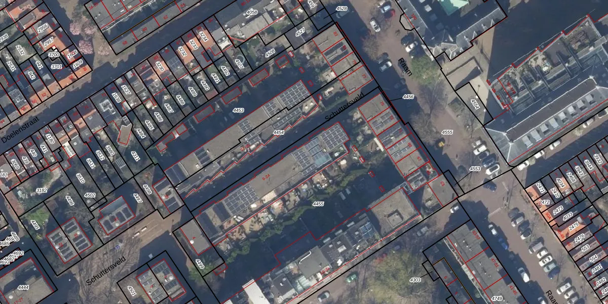 Schuttersveld 20 is gelegen op kadastraal perceel DEL00C4455. Deze kadastrale aanduiding is uniek en wordt gebruikt door het Kadaster om eigendomsrechten en andere zakelijke rechten vast te leggen. Het perceel maakt onderdeel uit van de kadastrale gemeente Delft.