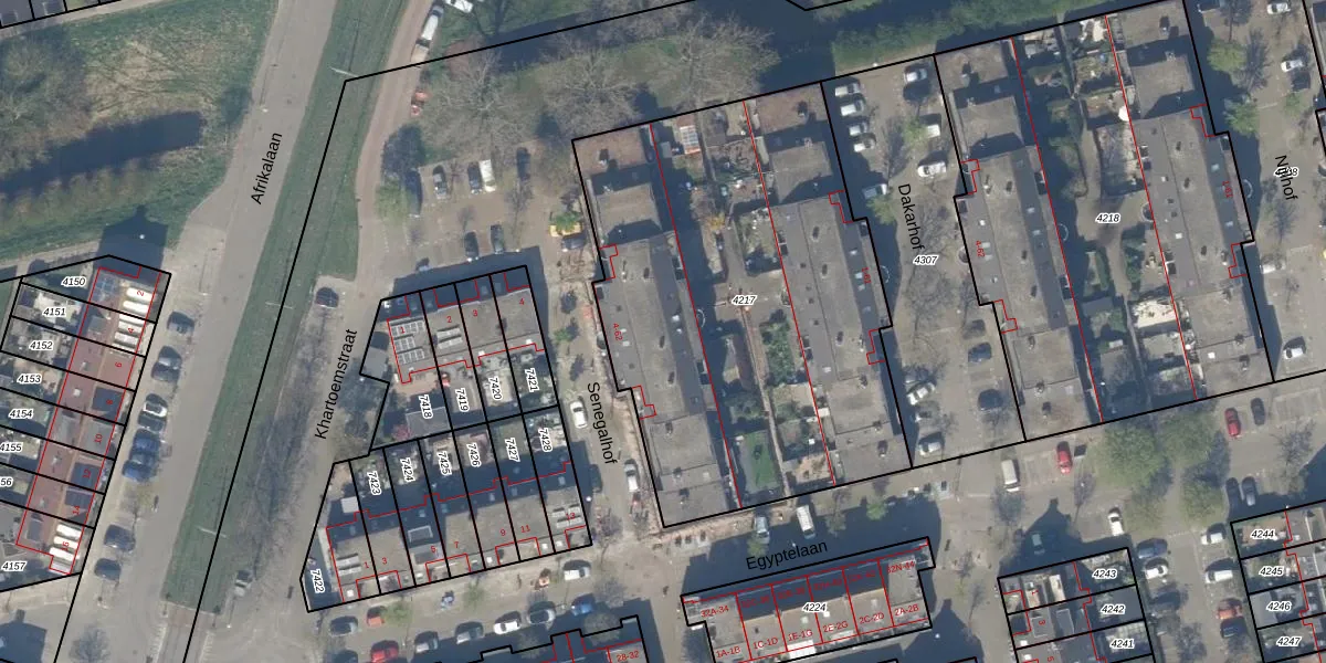 Senegalhof 54 is gelegen op kadastraal perceel DEL00R4217. Deze kadastrale aanduiding is uniek en wordt gebruikt door het Kadaster om eigendomsrechten en andere zakelijke rechten vast te leggen. Het perceel maakt onderdeel uit van de kadastrale gemeente Delft.