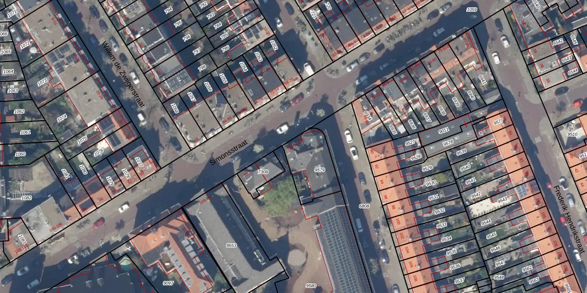 Simonsstraat 103-E is gelegen op kadastraal perceel DEL00A9579. Deze kadastrale aanduiding is uniek en wordt gebruikt door het Kadaster om eigendomsrechten en andere zakelijke rechten vast te leggen. Het perceel maakt onderdeel uit van de kadastrale gemeente Delft.