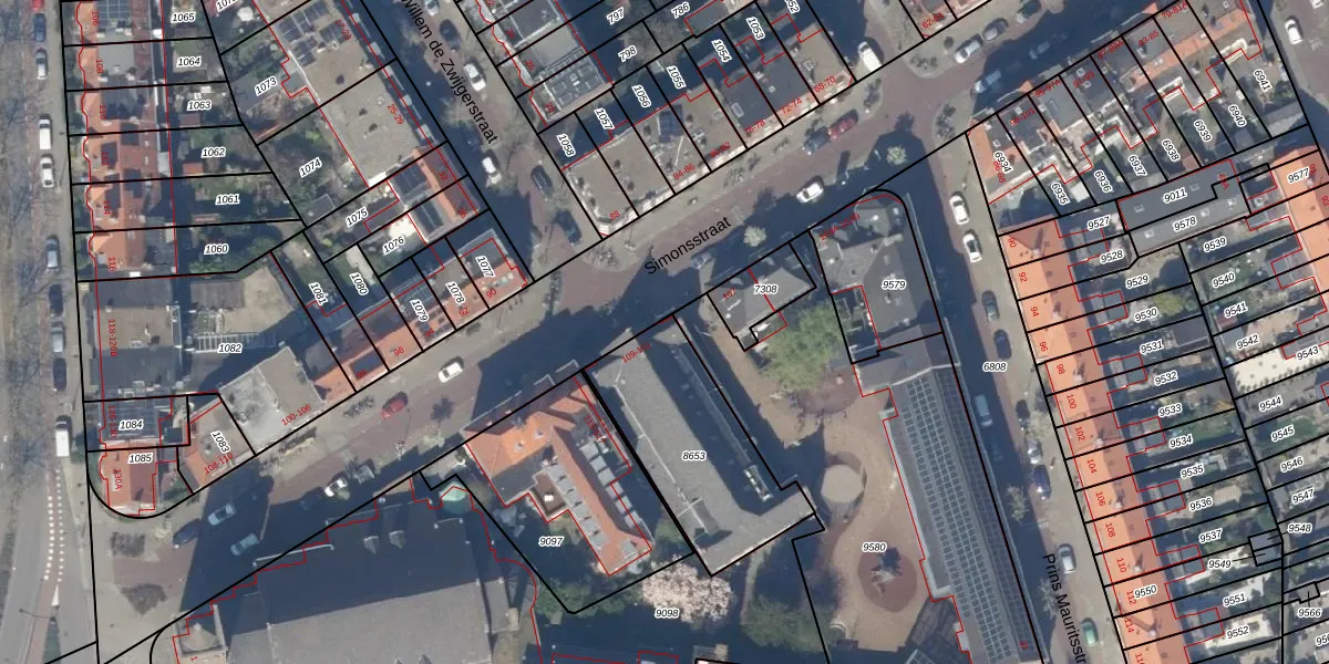 Het perceel waarop Simonsstraat 109 staat heeft een oppervlakte van 595 m². Dit is een groot perceel. De perceeloppervlakte wordt geregistreerd door het Kadaster. Gedetailleerde informatie over de maten van dit perceel kunt u vinden in het rapport Kadastrale kaart met maatvoering van Simonsstraat 109.