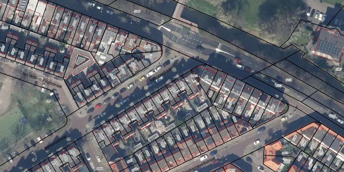 Het perceel waarop Simonsstraat 11 staat heeft een oppervlakte van 57 m². Dit is een klein perceel. De perceeloppervlakte wordt geregistreerd door het Kadaster. Gedetailleerde informatie over de maten van dit perceel kunt u vinden in het rapport Kadastrale kaart met maatvoering van Simonsstraat 11.