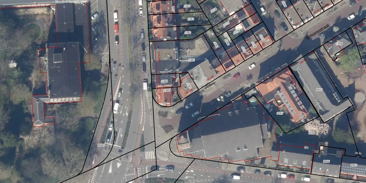 Het perceel waarop Simonsstraat 110 staat heeft een oppervlakte van 106 m². Dit is een middelgroot perceel. De perceeloppervlakte wordt geregistreerd door het Kadaster. Gedetailleerde informatie over de maten van dit perceel kunt u vinden in het rapport Kadastrale kaart met maatvoering van Simonsstraat 110.