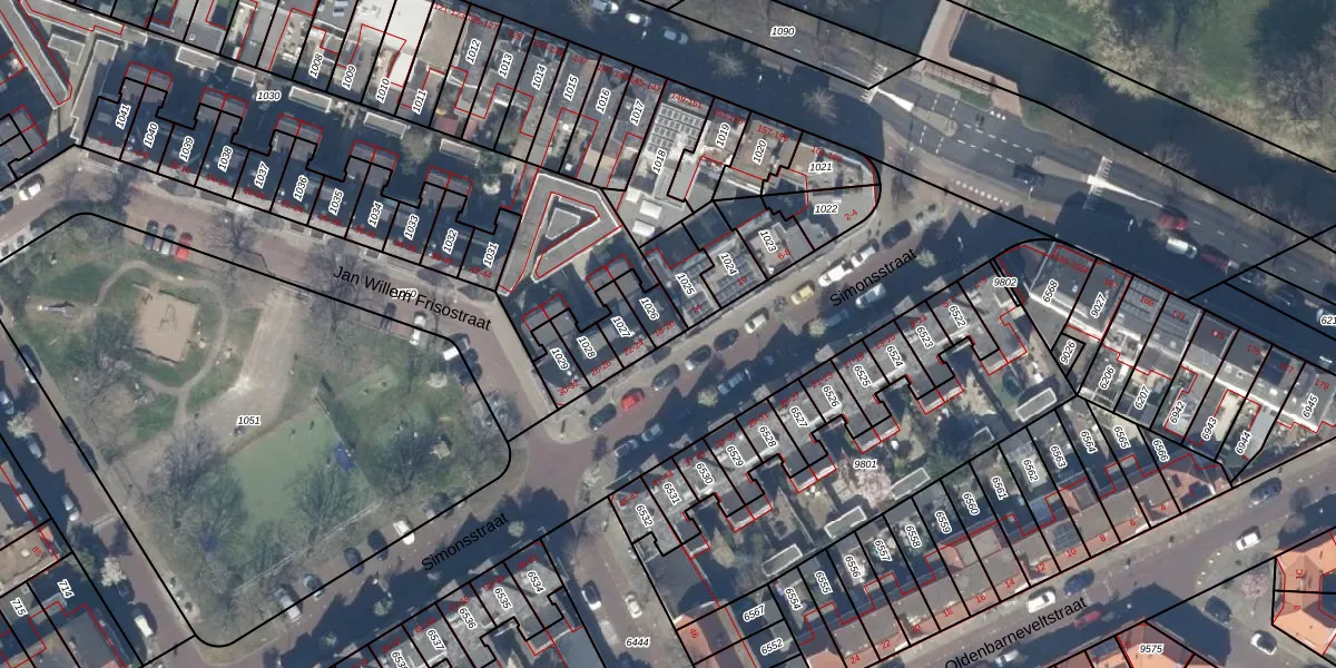 Het perceel waarop Simonsstraat 18 staat heeft een oppervlakte van 58 m². Dit is een klein perceel. De perceeloppervlakte wordt geregistreerd door het Kadaster. Gedetailleerde informatie over de maten van dit perceel kunt u vinden in het rapport Kadastrale kaart met maatvoering van Simonsstraat 18.