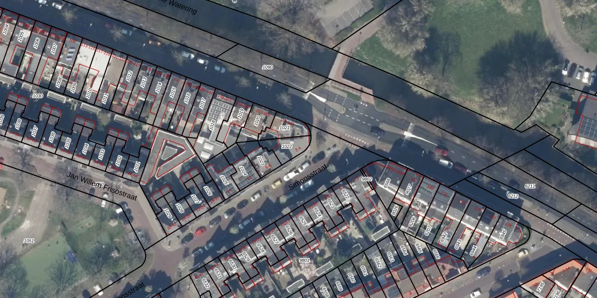 Het perceel waarop Simonsstraat 2 staat heeft een oppervlakte van 93 m². Dit is een klein perceel. De perceeloppervlakte wordt geregistreerd door het Kadaster. Gedetailleerde informatie over de maten van dit perceel kunt u vinden in het rapport Kadastrale kaart met maatvoering van Simonsstraat 2.