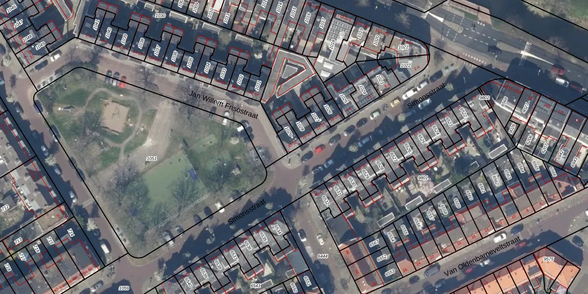 Het perceel waarop Simonsstraat 30 staat heeft een oppervlakte van 59 m². Dit is een klein perceel. De perceeloppervlakte wordt geregistreerd door het Kadaster. Gedetailleerde informatie over de maten van dit perceel kunt u vinden in het rapport Kadastrale kaart met maatvoering van Simonsstraat 30.