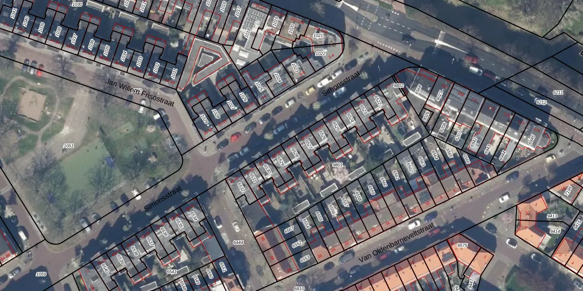 Het perceel waarop Simonsstraat 31 staat heeft een oppervlakte van 58 m². Dit is een klein perceel. De perceeloppervlakte wordt geregistreerd door het Kadaster. Gedetailleerde informatie over de maten van dit perceel kunt u vinden in het rapport Kadastrale kaart met maatvoering van Simonsstraat 31.