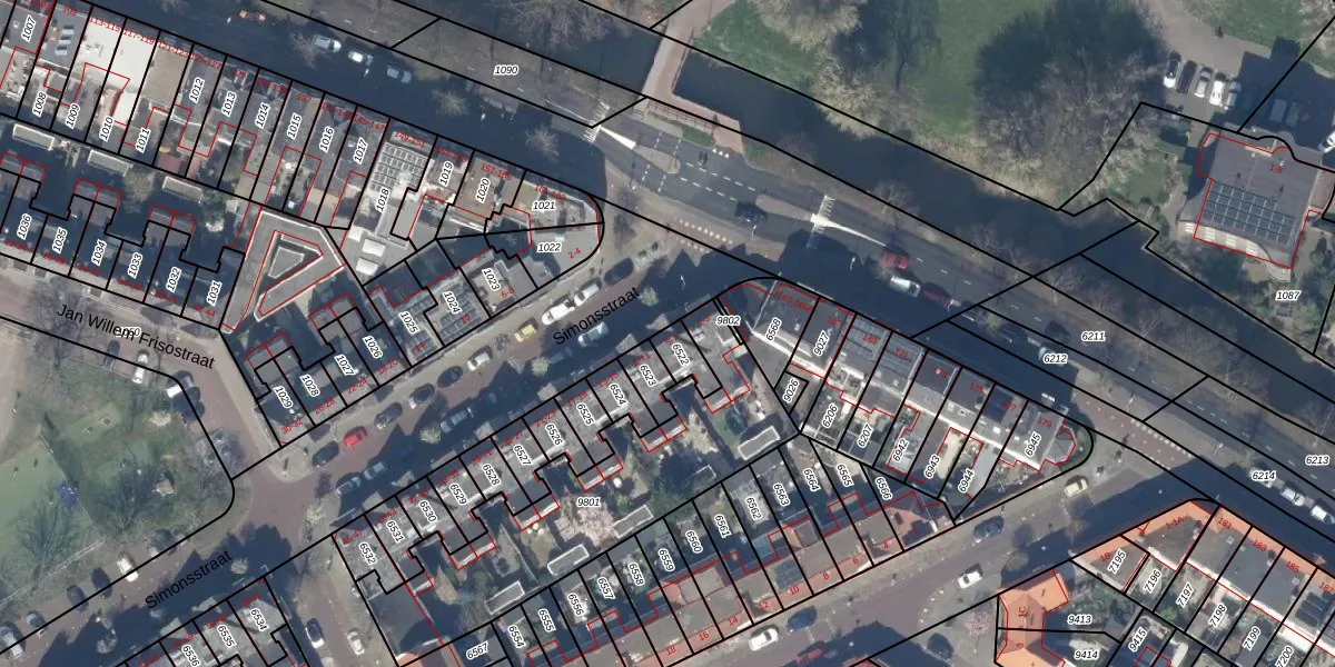 Het perceel waarop Simonsstraat 5 staat heeft een oppervlakte van 57 m². Dit is een klein perceel. De perceeloppervlakte wordt geregistreerd door het Kadaster. Gedetailleerde informatie over de maten van dit perceel kunt u vinden in het rapport Kadastrale kaart met maatvoering van Simonsstraat 5.