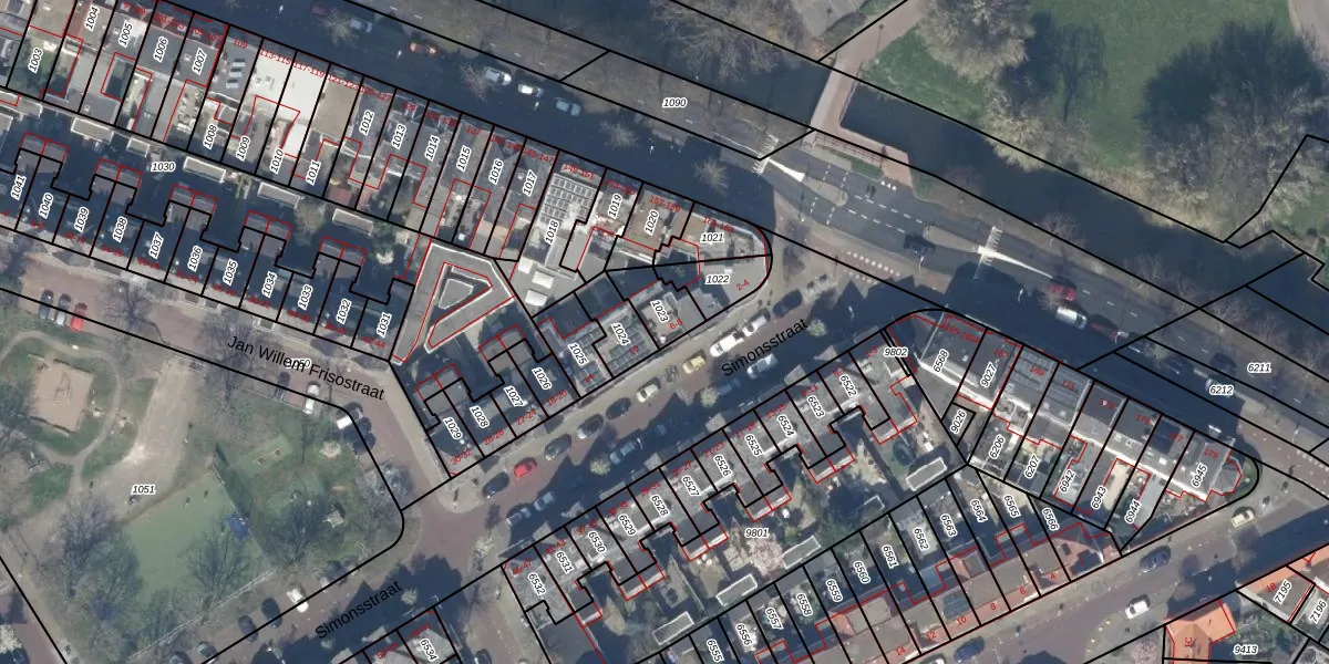 Het perceel waarop Simonsstraat 8 staat heeft een oppervlakte van 97 m². Dit is een klein perceel. De perceeloppervlakte wordt geregistreerd door het Kadaster. Gedetailleerde informatie over de maten van dit perceel kunt u vinden in het rapport Kadastrale kaart met maatvoering van Simonsstraat 8.