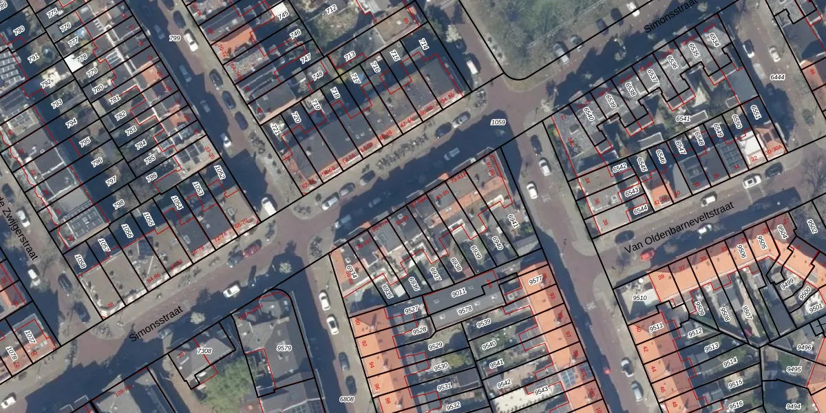 Simonsstraat 89 is gelegen op kadastraal perceel DEL00A6938. Deze kadastrale aanduiding is uniek en wordt gebruikt door het Kadaster om eigendomsrechten en andere zakelijke rechten vast te leggen. Het perceel maakt onderdeel uit van de kadastrale gemeente Delft.