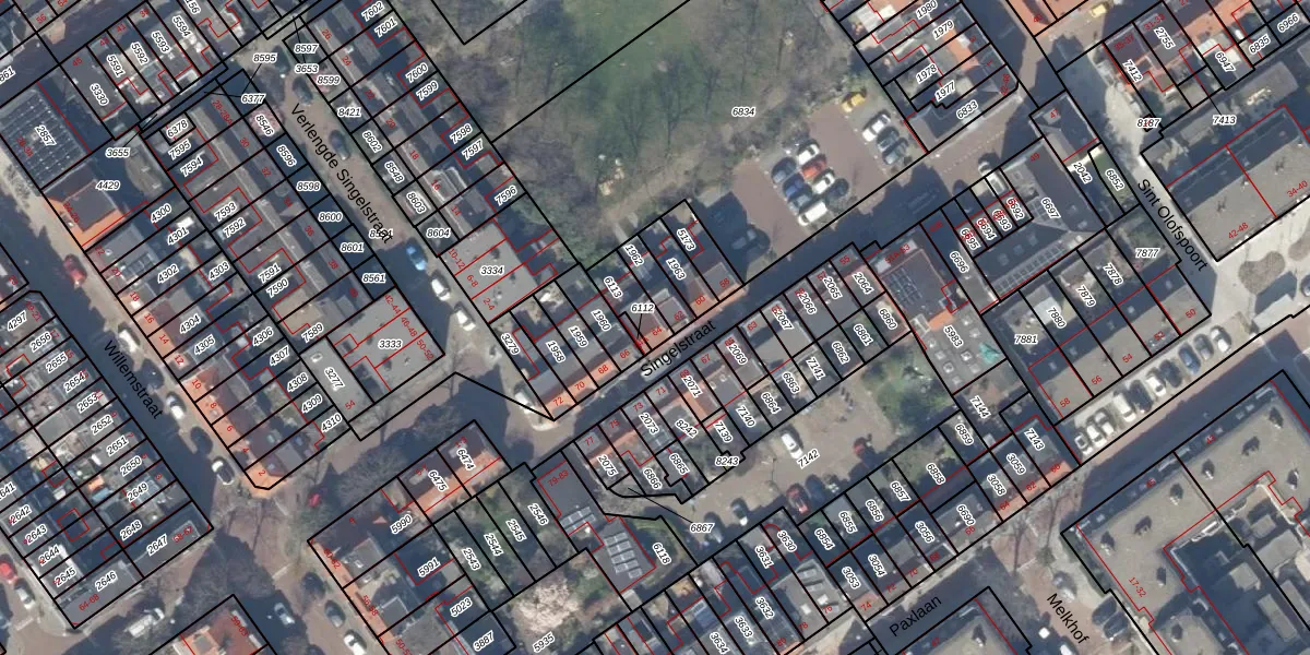 Het perceel waarop Singelstraat 64 staat heeft een oppervlakte van 80 m². Dit is een klein perceel. De perceeloppervlakte wordt geregistreerd door het Kadaster. Gedetailleerde informatie over de maten van dit perceel kunt u vinden in het rapport Kadastrale kaart met maatvoering van Singelstraat 64.
