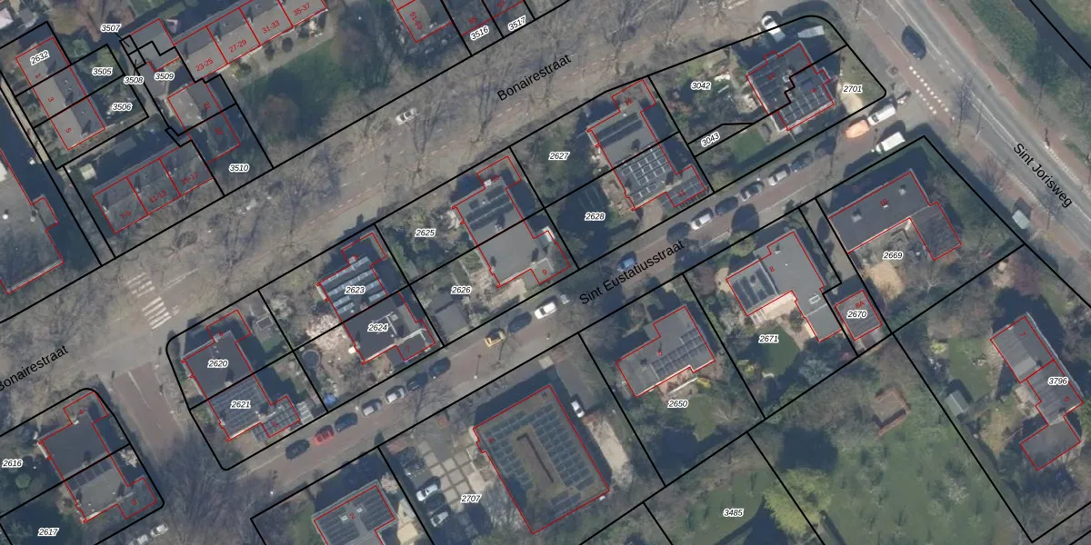 Het perceel waarop Sint Eustatiusstraat 9 staat heeft een oppervlakte van 371 m². Dit is een groot perceel. De perceeloppervlakte wordt geregistreerd door het Kadaster. Gedetailleerde informatie over de maten van dit perceel kunt u vinden in het rapport Kadastrale kaart met maatvoering van Sint Eustatiusstraat 9.
