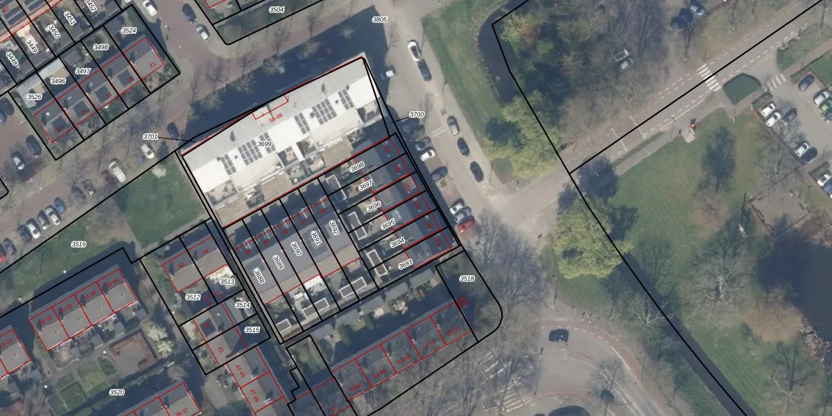 Gebruik de zoekbalk of klik op een perceel voor informatie over de adressen binnen dit perceel.