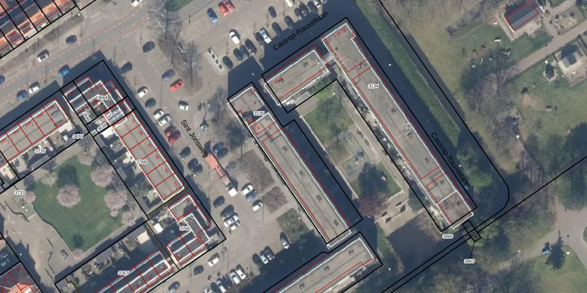 Het perceel waarop Sint Jorisweg 152 staat heeft een oppervlakte van 800 m². Dit is een groot perceel. De perceeloppervlakte wordt geregistreerd door het Kadaster. Gedetailleerde informatie over de maten van dit perceel kunt u vinden in het rapport Kadastrale kaart met maatvoering van Sint Jorisweg 152.
