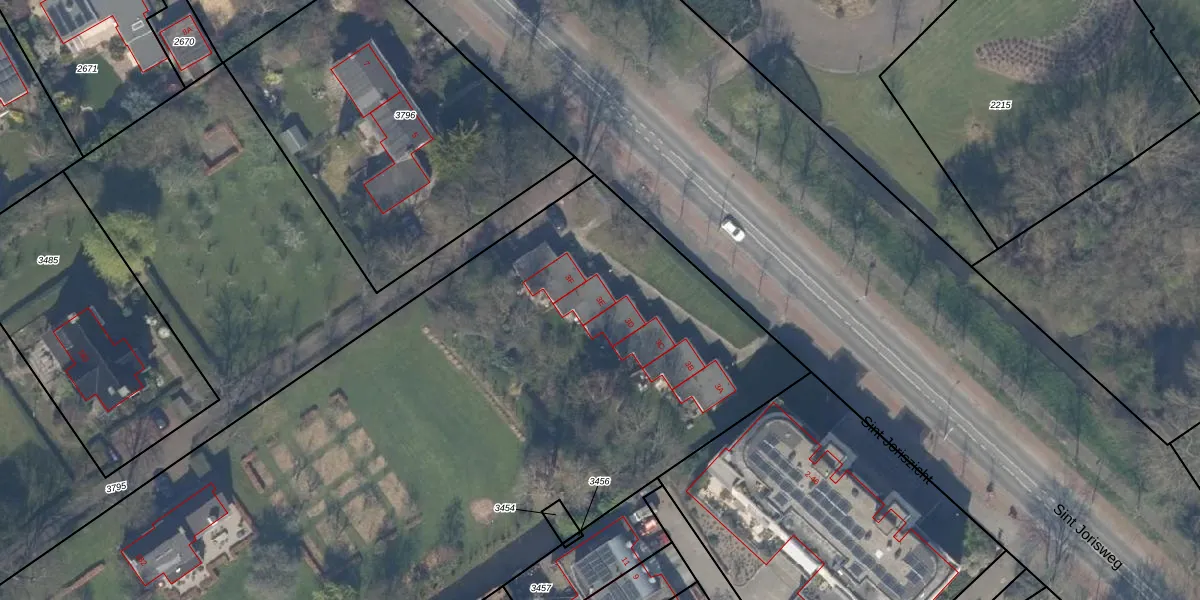 Het perceel waarop Sint Jorisweg 3-E staat heeft een oppervlakte van 6717 m². Dit is een zeer groot perceel. De perceeloppervlakte wordt geregistreerd door het Kadaster. Gedetailleerde informatie over de maten van dit perceel kunt u vinden in het rapport Kadastrale kaart met maatvoering van Sint Jorisweg 3-E.