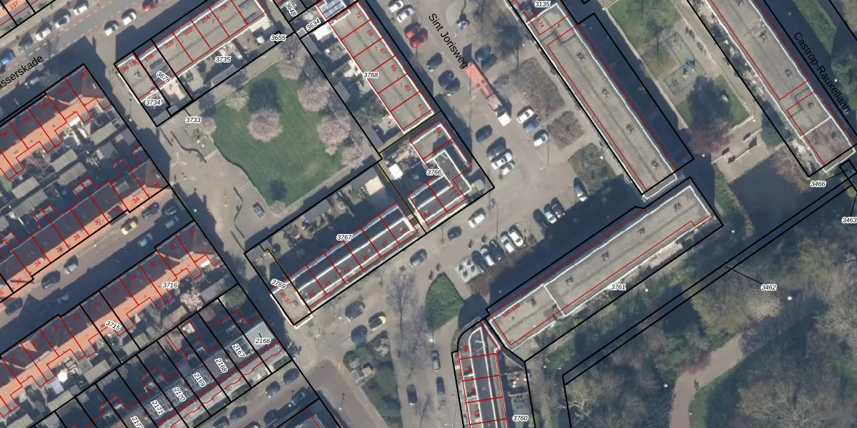 Sint Jorisweg 51 is gelegen op kadastraal perceel DEL00N3766. Deze kadastrale aanduiding is uniek en wordt gebruikt door het Kadaster om eigendomsrechten en andere zakelijke rechten vast te leggen. Het perceel maakt onderdeel uit van de kadastrale gemeente Delft.