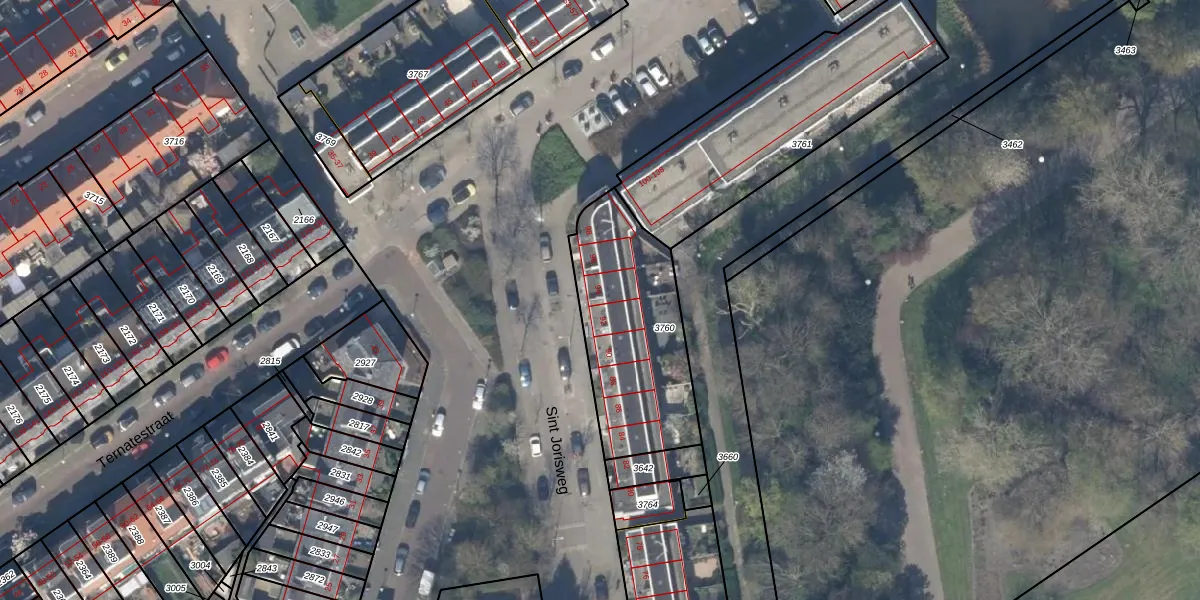 Het perceel waarop Sint Jorisweg 94 staat heeft een oppervlakte van 643 m². Dit is een groot perceel. De perceeloppervlakte wordt geregistreerd door het Kadaster. Gedetailleerde informatie over de maten van dit perceel kunt u vinden in het rapport Kadastrale kaart met maatvoering van Sint Jorisweg 94.