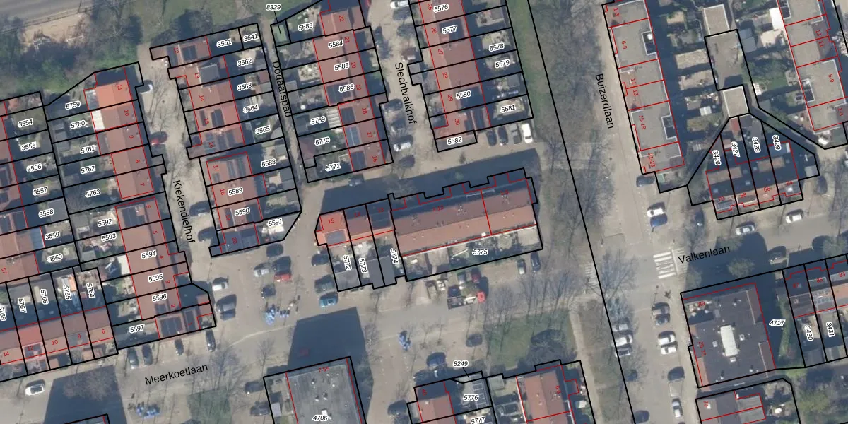 Slechtvalkhof 11 is gelegen op kadastraal perceel DEL00R5775. Deze kadastrale aanduiding is uniek en wordt gebruikt door het Kadaster om eigendomsrechten en andere zakelijke rechten vast te leggen. Het perceel maakt onderdeel uit van de kadastrale gemeente Delft.
