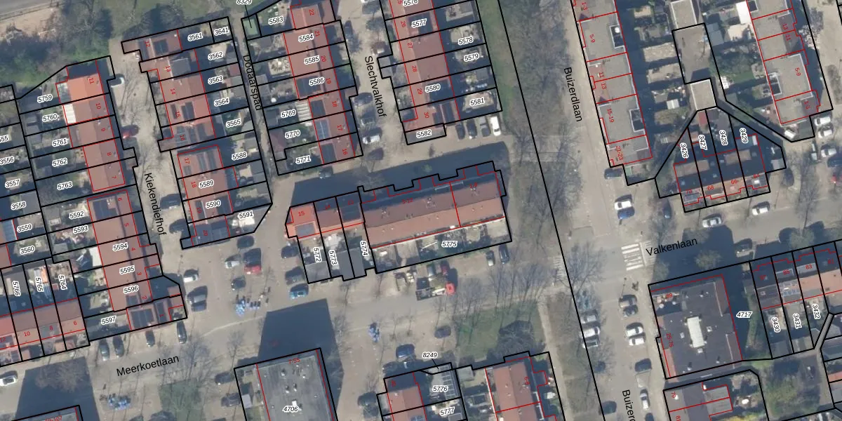 Het perceel waarop Slechtvalkhof 4 staat heeft een oppervlakte van 641 m². Dit is een groot perceel. De perceeloppervlakte wordt geregistreerd door het Kadaster. Gedetailleerde informatie over de maten van dit perceel kunt u vinden in het rapport Kadastrale kaart met maatvoering van Slechtvalkhof 4.