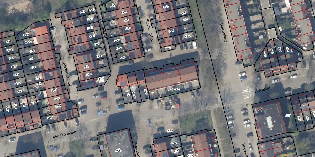Het perceel waarop Slechtvalkhof 5 staat heeft een oppervlakte van 641 m². Dit is een groot perceel. De perceeloppervlakte wordt geregistreerd door het Kadaster. Gedetailleerde informatie over de maten van dit perceel kunt u vinden in het rapport Kadastrale kaart met maatvoering van Slechtvalkhof 5.
