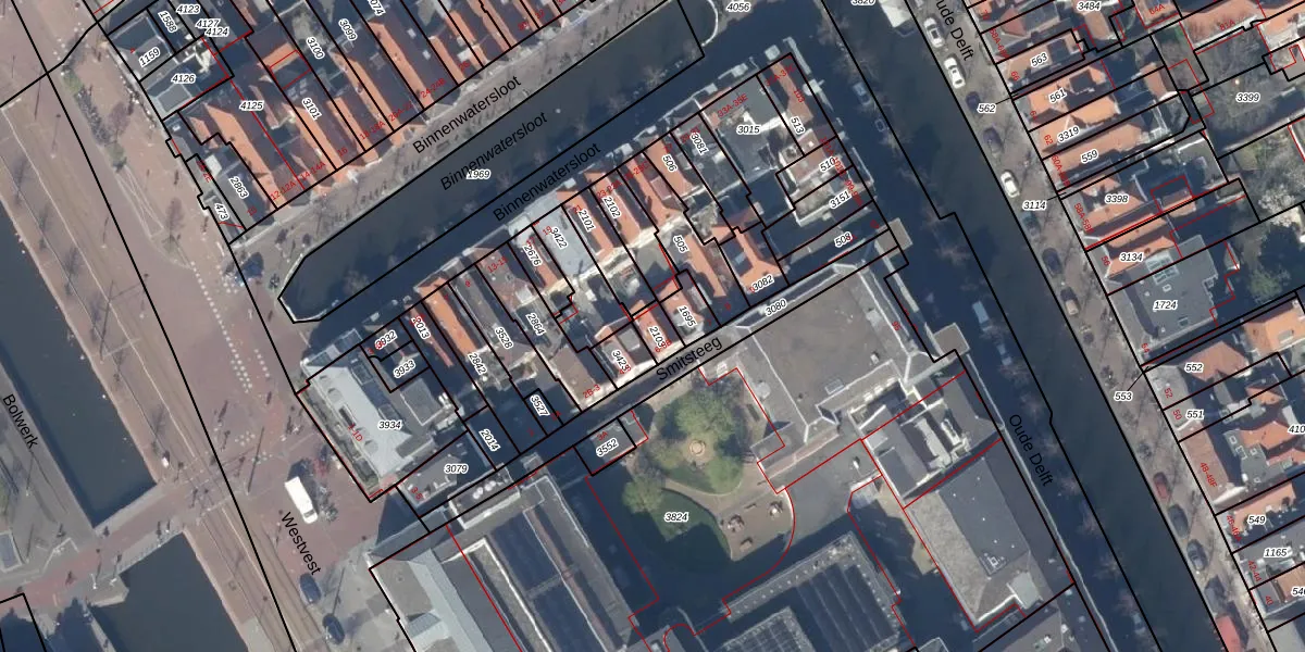 Smitsteeg 6 is gelegen op kadastraal perceel DEL00D2103. Deze kadastrale aanduiding is uniek en wordt gebruikt door het Kadaster om eigendomsrechten en andere zakelijke rechten vast te leggen. Het perceel maakt onderdeel uit van de kadastrale gemeente Delft.