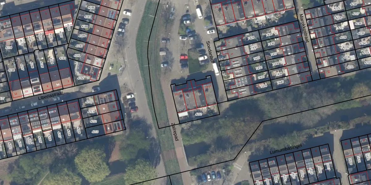 Soedanhof 25 is gelegen op kadastraal perceel DEL00R4222. Deze kadastrale aanduiding is uniek en wordt gebruikt door het Kadaster om eigendomsrechten en andere zakelijke rechten vast te leggen. Het perceel maakt onderdeel uit van de kadastrale gemeente Delft.