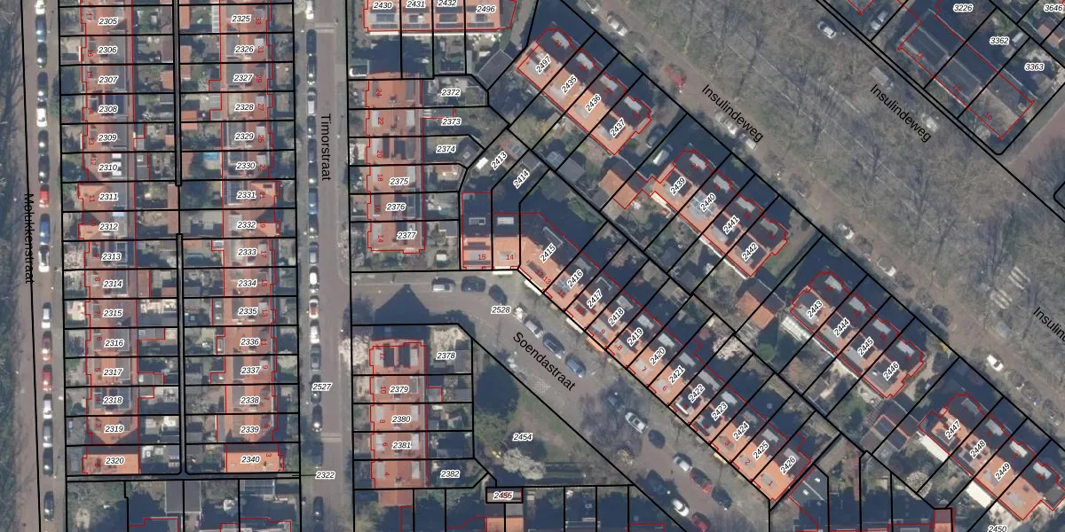 Het perceel waarop Soendastraat 13 staat heeft een oppervlakte van 228 m². Dit is een middelgroot perceel. De perceeloppervlakte wordt geregistreerd door het Kadaster. Gedetailleerde informatie over de maten van dit perceel kunt u vinden in het rapport Kadastrale kaart met maatvoering van Soendastraat 13.
