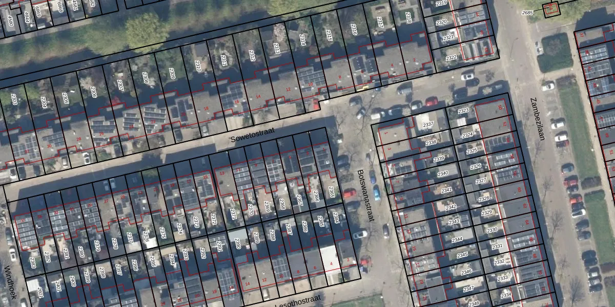 Sowetostraat 3 is gelegen op kadastraal perceel DEL00S2366. Deze kadastrale aanduiding is uniek en wordt gebruikt door het Kadaster om eigendomsrechten en andere zakelijke rechten vast te leggen. Het perceel maakt onderdeel uit van de kadastrale gemeente Delft.