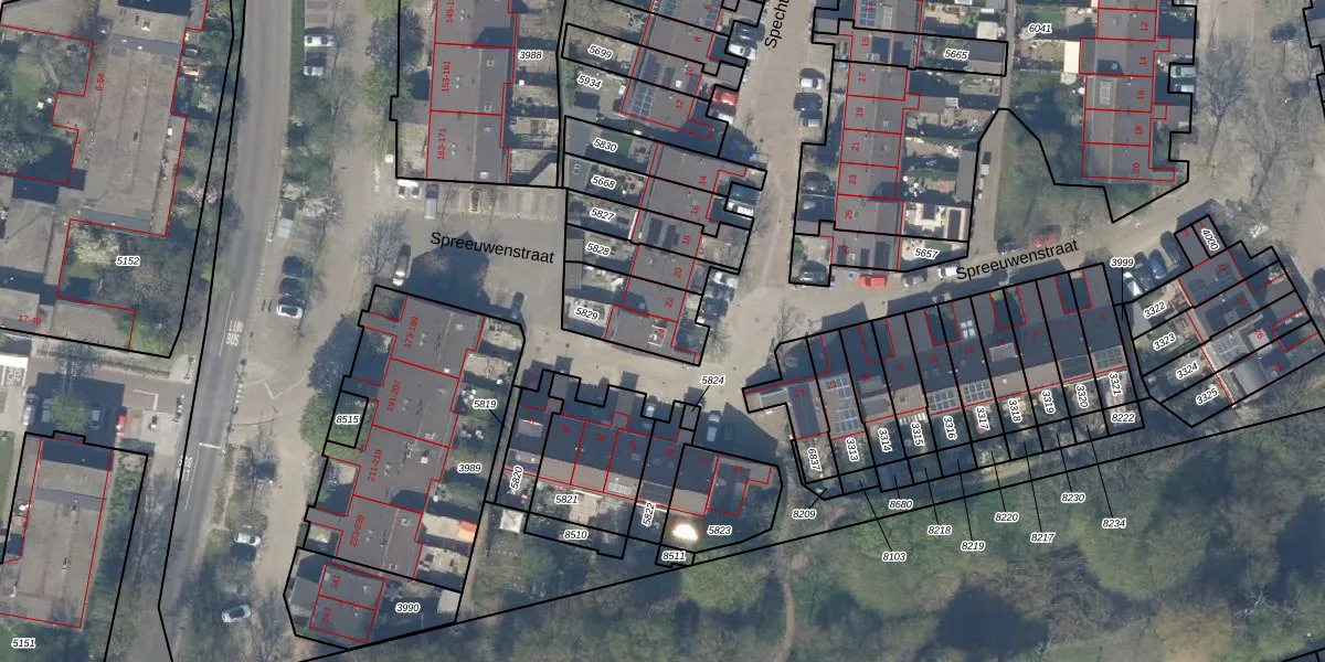 Spechtstraat 24 is gelegen op kadastraal perceel DEL00R5829. Deze kadastrale aanduiding is uniek en wordt gebruikt door het Kadaster om eigendomsrechten en andere zakelijke rechten vast te leggen. Het perceel maakt onderdeel uit van de kadastrale gemeente Delft.