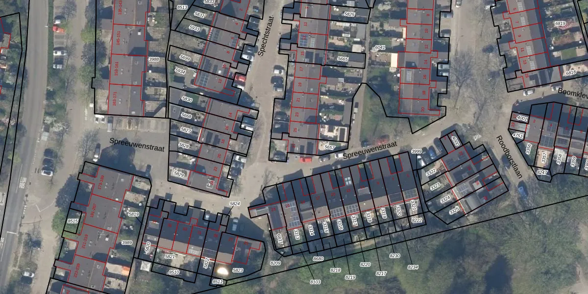 Gebruik de zoekbalk of klik op een perceel voor informatie over de adressen binnen dit perceel.