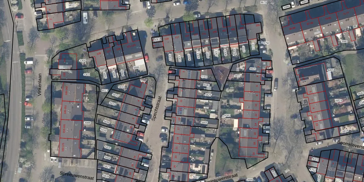 Spechtstraat 9 is gelegen op kadastraal perceel DEL00R5825. Deze kadastrale aanduiding is uniek en wordt gebruikt door het Kadaster om eigendomsrechten en andere zakelijke rechten vast te leggen. Het perceel maakt onderdeel uit van de kadastrale gemeente Delft.